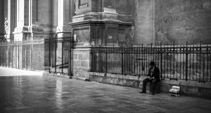 Ну хорошо, конкретно в момент снимка я думала про одиночество музыканта на фоне огромного собора. А потом в ходе разбора родилось решение перевести в ч/б и посмотреть на контрасты света и тени.