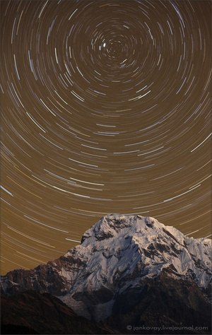 при длительной, ооочень длительной выдержке смазы идут за счет естественного перемещения звезд...) Мы ищем пейзажный кадер, значит зажимаем диафрагму... ИСО - не знаю, я бы попробовал для начала сравнительно низкое значение... Не знаю, да те же 800 например... Выдержка будет считаться минуттами... У некоторых до получаса... За такое время, звезды реально сместятся.
