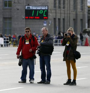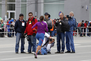 та же фигня на Сибирском фестивале Бега в Новосибе.. пресса сплошь с белыми эльками 70-200, Копалов из КП - ну он с Никоном всю жизнь.. и пара мужичков с сонями 99.. сильно не приглядывался вообще-то, но кэнон явно превалировал - среди профснимальщиков