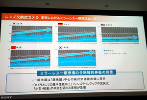 А вот и свежая статистика - на этот раз Sony в своей презентации привела данные по рыночной доле БЗК среди камер со сменной оптикой на разных рынках.