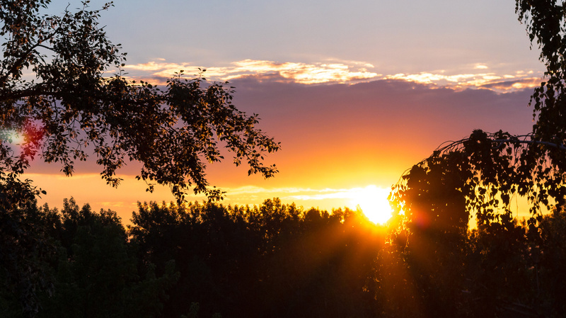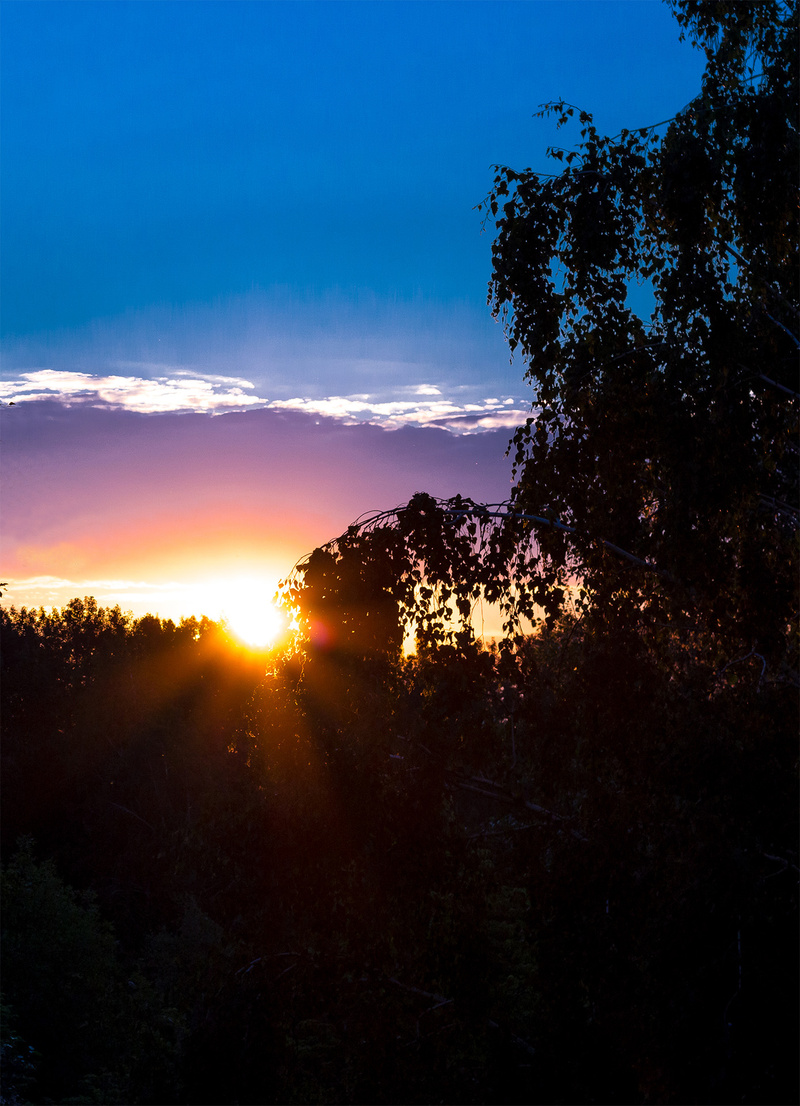 в более позднее времяэто рассвет.. значит, в более раннее.. у человека сьемка с балкона, то есть он ограничен маневром и соответственно деревьями.. если он спустится на землю - вообще ничего не снимет, ибо вокруг билдинги... а матрице ничего не будет, выдержка порядка 1\4000 ее не спалит, только наводиться на резкость лучше все по тем же деревьям или на бесконечность и потом быстро переводить на дрожащий огонек рассвета.. тем более что солнце на горизонте не имеет той убойной силы, как в зените
