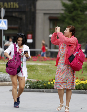 возле оперного несколько мест разноцветных и везде сочетания разные) еще и как солнышко играть будет, сегодня его наполовину не поймал