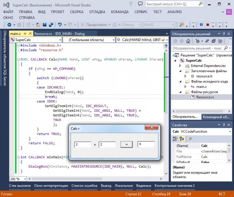 Ниже скриншот с программой на Си. Всё, что писалось руками - на экране (это вообще весь текст программы, за кадром сгенерированный визуальный редактором rc-файл и заголовочный файл).