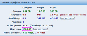 Там половину времени - "фрилич", когда скачанное не учитывается, а отданное считается, т.е. рейтинг растет :biggrin: