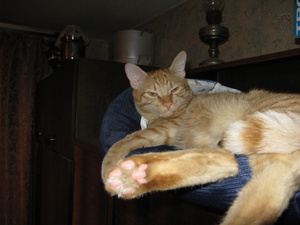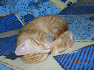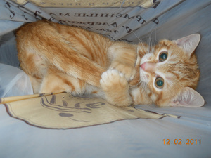 Взят был здесь же, на форуме, через Лену-musi и Юлю-Джули, в возрасте неполных 2 месяцев. И практически сразу же "усыновлен" Рыжиком.