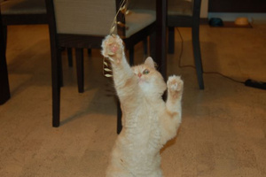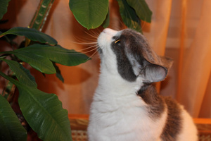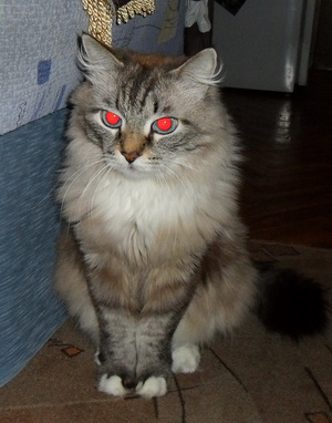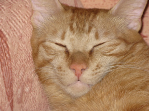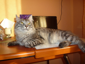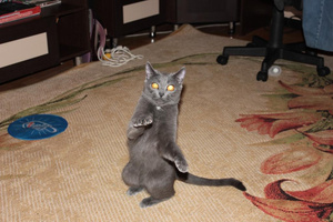 Проглот, хулиган и вообще чертенок! Рыжика задирает только так. Шторы обрывает. Есть готов что угодно (на столе просто ничего нельзя оставить, вплоть до помидоров или чашки с чаем). А на руках или просто когда его гладишь -- тарахтит, тарахтит...