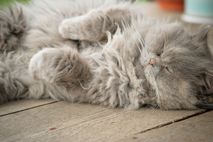 Любимица мужа, встречает его с работы, нежно воркуют, обнимаются. Только его, она нежно трогает за лицо, расшиперив лапку