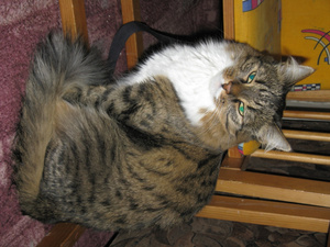 В декабре 2006 приехал ко мне в Академ аж из Снегирей, 1,5-месячным котенком.