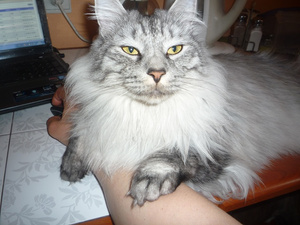 С тех пор вымахал в огромного своенравного котяру весом почти 9 кг.