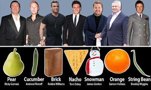 "Согласно новому исследованию, современных мужчин можно отнести к одной из 7-ми основных типов фигур: "помидор", "огурец", "начо", "стручковая фасоль", "груша", "кирпич" и "снеговик".