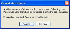 при запуске оперы появляется эта надпись.после перезагрузки компа опера запускаетсянормально и работает без глюков..