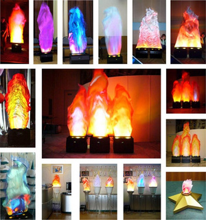 Сделали бы сами такой факел. Ничего сложного. Фото же есть. Вентилятор плоский, плюс лампочки синие и красные. Ну и ткань легкую, чтобы вентилятор ее поднять мог. Поставили в чашу и грейтесь на здоровье. Светодиоды лучше не брать, у них свет слабый. Лампы для этого лучше подходят.не мастер я нынче - ни мастерской ни инструмента... - поэтому и пишу тут..