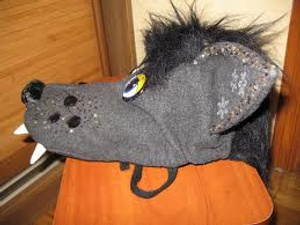 Если натянуть чулок на полуцилиндр из бумаги и немного подрезать, подправить, прицепить завязки, получится основа для верблюдо-головы. Конструктивно что-то вроде вот этой волчьей. Далее можно декорировать.Сейчас читают
