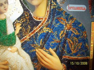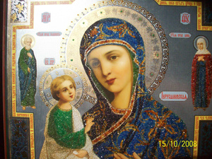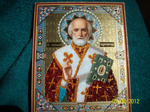 Выкладываю иконы и бокалы полудрагоценными камнями,мозаичным стилем.Очень красиво))))))))