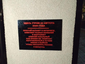 У гостиницы Xander в Томске, где останавливался Алексей Навальный, появилась «памятная табличка». Фото сегодня появились в соцсетях