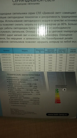 ну по запросу что вываливается - 7200-7600 световой поток...дома гляну. Одна коробка осталась. того что на кухне собирался вешать (это уже в моей квартире) - и там да, всего 6 кв.м - на улице фонарь можно не включать