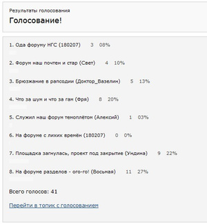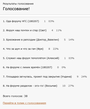 Текущее голосование остановлено. Так и быть, по просьбам будет организовано открытое голосование.