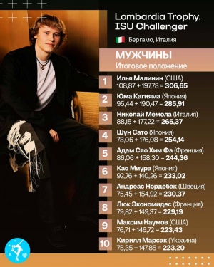 В сумме за короткую и произвольную программы Гуменник получил от судей 262,82 балла и занял первое место на соревнованиях. Вторым стал представитель Южной Кореи Ким Хёнгём (228,60), на третьей строчке расположился мексиканец Донован Каррильо (222,36).