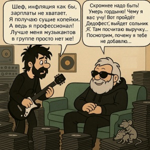 Да, похожа, а винил реально найти такого альбома в норм состоянии?Когда мы винил покупали по цене месячной зарплаты у фарцовщиков, - было реально. Фарцовщики в свою очередь скупали контрабандный винил у моряков дальнего плавания, детишек дипломатов и т.д.. Можно было даже кое-кому делать заказы, но это мало практиковалось. У меломанов был свой круг общения, мы могли менять, покупать в основном у фарцовщиков. Реально выйти на поставщиков было сложно, потому что перекупщики имели на этом немалые деньги и ещё они валютой торговали, а это всё было очень нелегально и там были расстрельные статьи.