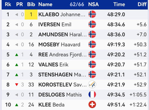 И еще четыре норвежца. Коростелев - на 8 месте.