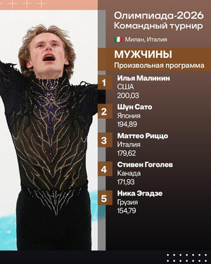 Двукратный чемпион мира по фигурному катанию Илья Малинин показал первый результат в произвольной программе командного турнира Олимпийских игр‑2026 в Милане.