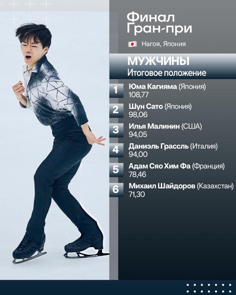 Илья Малинин впервые в истории фигурного катания исполнил СЕМЬ четверных прыжков и выиграл соревнования мужчин в финале Гран-при