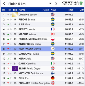 Даша заняла 8-е место, уступив победительнице Джесси Диггинс 9 секунд