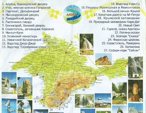 Экскурсий - очень много, отпуска не хватит. Приблизительные цены на одного человека : на Джур-Джур на 5 часов - 650, , Бахчисарай на 8 часов - 1500, Севастополь парад 9 мая - 1500....). Все парки я посетила дикарем, так сказать, - доехала обычным автобусом, купила билет на вход в парк (200 в Никитский и в Партените, парки в Алупке и в Массандре - бесплатно), где можно незаметно присоединиться к организованной группе, а вот экскурсию по дворцу придется покупать. И в горы обязательно попадите - не пожалейте денег. По морю можно путешествовать из Ялты так: До Ласточкиного гнезда 300 (с высадкой на час - 400) - час дороги на теплоходике, куда душа пожелает на яхте или катере - 2000 в час. Возможно, что с наступлением лета (я-то в мае отдыхала) цены вырастут. Не знаю точно этого. Из Алушты по морю никуда не добраться - морской транспорт никакой не ходит.