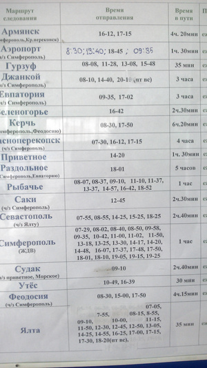 Крым принимает гражданские самолеты только в Симферополе. Прилетаем утром, хозяин квартиры встречает и за 400 руб (троллейбус -70, частники - от 1000) доставляет до места, вручает ключи и исчезает. Переобуваемся и вперед! Все поголовно ходят в кроссовках. С палками для скандинавской ходьбы, с рюкзаками... Расписание автобусов из Алушты - ниже фото смотрите. Есть еще по межгороду маршрутки и троллейбусы, которые очень даже резво носятся по горам, несмотря на свой преклонный возраст.
