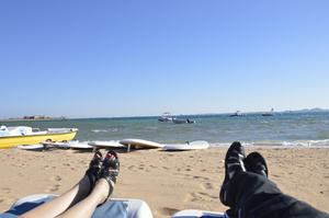 Но согласитесь - явно теплее, чем в Нске, и даже в Крыму.Как Вам наши пляжные костюмы, в некоторые дни, и креатив по ветрозащите? Бедуины вообще ходили в драповых пальтишках, поверх традиционных костюмов. А так то конечно, разве могли бы мы себе такие вольности в Сибири или Крыму позволить в декабре? ) Тем не менее, раз за всё было заплачено, то купались, закалялись, подогревались по полной программе, поражая замёрзших египтян )![]()