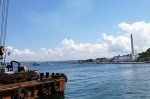 Там на перешейке в 2014 наши моряки умышленно военный корабль потопили, чтобы остальной флот Украина не вывела, год потом не могли поднять его.