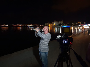 Солдата с матросом с какой точки снимал? Понять не могу.Территория яхт-клуба, на своем катере к плавкрану отплыл, дальше нельзя было.