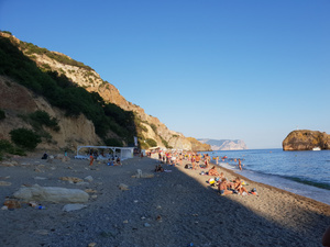 Последнее фото с пляжа "800 ступеней". Обратно немногие рискуют подняться, поэтому последний катер (в 19 часов) забивается до отказа. Правда увозит всех в Балаклаву)