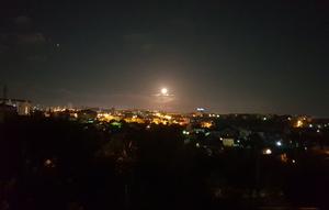 Ночной вид в сторону Казачьей бухты (прожекторы кажется с аквапарка Зурбаган светят). В самом Зурбагане ничего необычного, а вот если поехать из Севастополя в Евпаторию, то после Саки будет огромный аквапарк "Банановая республика".