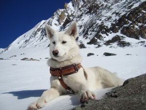 Кстати прикол, когда спускались по леднику Малый Актру 3 мая, встретили собаку которая поднималась вверх с одной из групп - видимо решила сходить на Караташ. Причем сказали что собака не их! То есть собака самостоятельно не в связке и без страховки отправилась на восхождение, жалко сфотать не догадались. Причем рассказывают что какая то собака (возможно даже эта и есть) с одной из групп залезла на вершину Актру. В общем доказано - собачий альпинизм существует!
