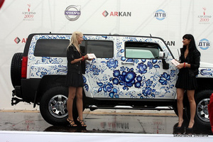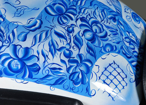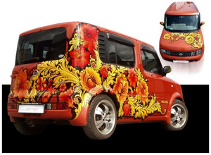 ток это хохлома, а вот гжель может и подойти2Гжель канечно прикольно, но у тебя расцветка машины не подходит.