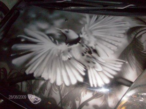 А по цене примерно во сколько обошлось?Во общем!Маляр+Аэрограф+Маляр в 25тыров.Капот +бампер,на бампере брусчатка. Маляр с начало все сколы убирает,снимает лак,потом за работу берётся Аэрограф, в завершение маляр покрывает лаком и полирует! :)Но это было два года назад!