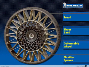 этож голимый фотошоп... ну правда присмотритесь...Это Мишлен придумал. Колеса будущего типа. Диск, полиуретан какой-то или подобие его и чутка "нанорезины". Дискавери вчера казал. Демонстрировали на каком-то рыдване американском. Смотрится позорно, но уверяли - за ними будущее.