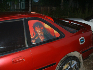 кстати видел неплохое решение, как на легковушку на заднее стекло и задние боковые нанесли пленку с рисунком и перфорацией. То есть снаружи как то нифига не видно, а изнутри все видно и рассеяный свет.