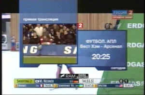 ) соревнования. Но что поделать, формально нарушения закона не наблюдается.На других каналах, кстати, более аккуратно делают такие вещи: помельче, в нижней части экрана (например, на "Первом").