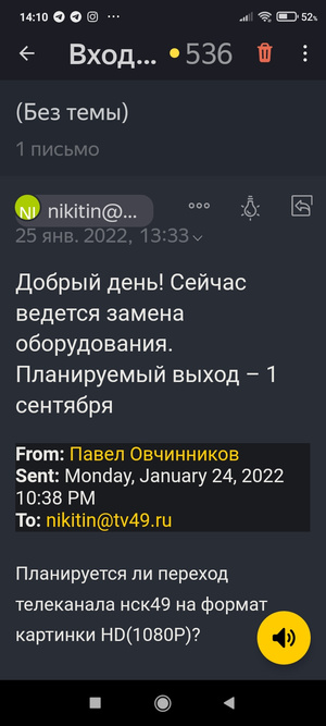 Про закрытие нск49 не дождётесь в прошлом году они перешли на картинку 16:9 улучшили качество съёмки до 720рСо спутника работают, в "Телекарте" (пакет "Мастер", 150 каналов, 190р/мес., 1700р./год=142 р./мес.). В области это теперь единственный н-ский канал, не привязанный к кабелю и интернету. Качество с некоторых пор и вправду хорошее. И в цифре, разумеется (хоть и в SD, но если исходный источник HD, то и транслируемая в SD картинка визуально лучше, чем когда со студии отдаётся в SD).