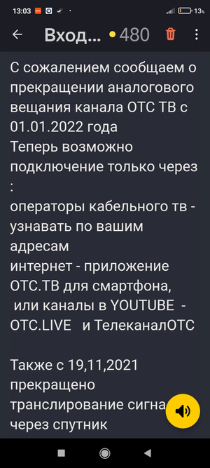 Вчера в новостях о прекращении вещания канала ОТС, сказали в новостях.