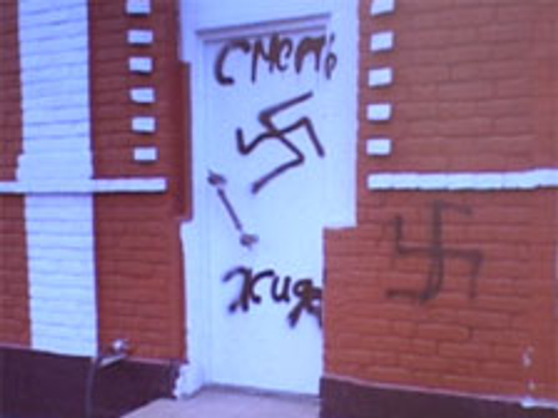 И два - насколько я понимаю, картинок оскверненной синагоги нет. А любимые тексты скинов любой национальности - в аттачах. Так что очень вероятно, что именно они, а не только свастики фигурировали на стенах. Ну а за призыв "смерть русским", "смерть жидам", "смерть христианам" надо мочить и мочить показательно. Это уже точно не КоАП. Но может быть я что-то пропустил и Пусси тоже к убийству призывали? Просветите?