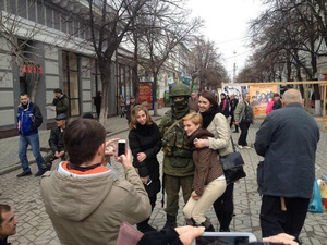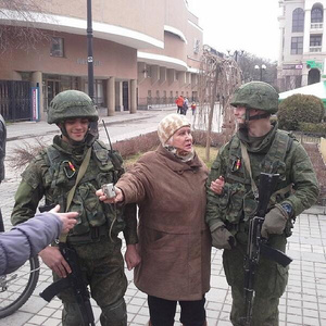 (...) с кем вы готовы воевать за крым?(...) не надо этой вот "коричневой бандеровщины" из телевизораПравильно спросить : "за кого Вы пойдёте воевать?". Ответ : "За наш народ, за освобождение родной земли от врага". Пример. Жители Феодосии - против хунты и за Россию. см. видео о митинге возле в/ч в Феодосии.