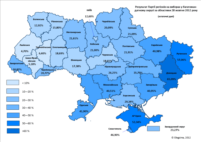 и если мы говорим о поддержке партии регионов, то вот картинка, которая показывает - как голосовал народ на парламентских выборах.