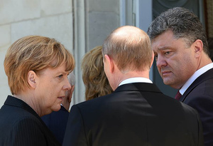 Лидеры России и Украины ненадолго встретились в Нормандии, где проходят торжества по случаю 70-летия высадки союзных войск на берегах Франции. Как сообщает Reuters, «встреча» Путина и Порошенко длилась 15 минут.