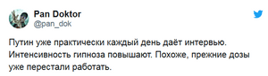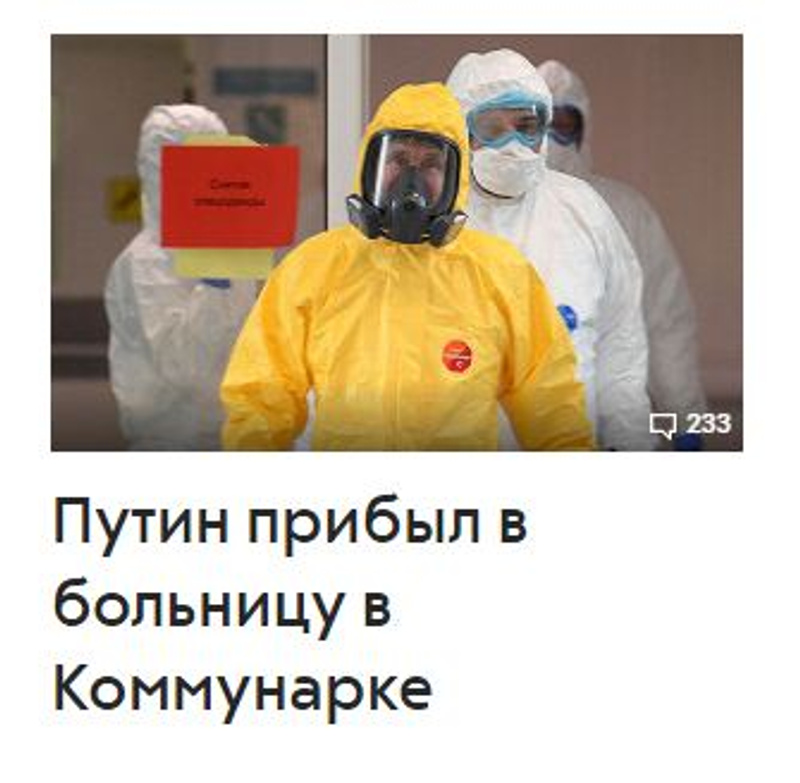 Да фиг его знает, что они там поменяли-непоменяли, но мечутся в условиях кризиса и стремительным домкратом упавшего рейтинга, тассовский опус закончили на 17й из 20, щас вон больничку показывают, что типа не взаперти в Крыму или на Валдае... но кроме раздражения всё это ничего не вызывает уже.