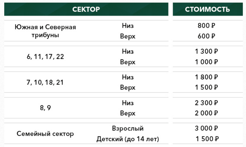 Дети до 7 лет, сопровождаемые их законными представителями, пропускаются на Стадион бесплатно при условии, что такие дети не занимают отдельного места. В таком случае на ребенка оформляется бесплатный билет без права занятия отдельного места.