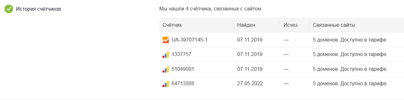 а что за 4 счётчика у НГС.РУ - UA-39707145-1, 1337757, 51049001, 64713388???