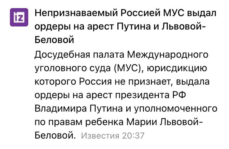 читать такое - кровь из глаз пойдетICC judges issue arrest warrants against Vladimir Vladimirovich Putin and Maria Alekseyevna Lvova-Belova / перевод